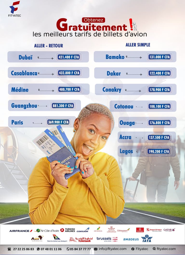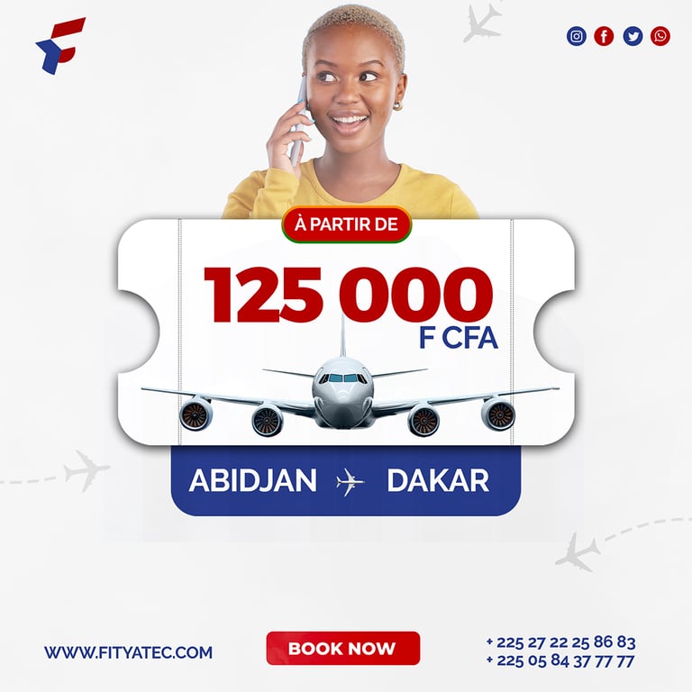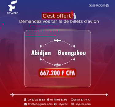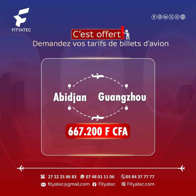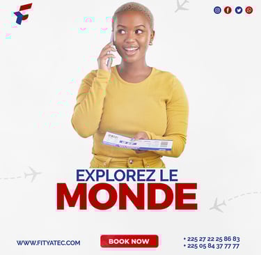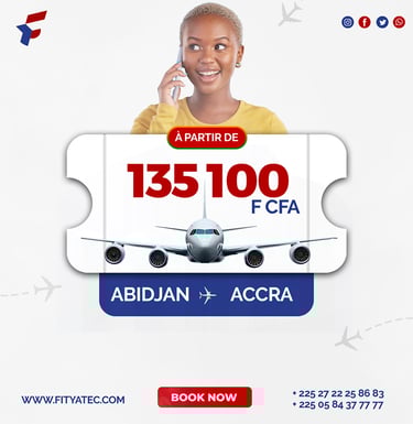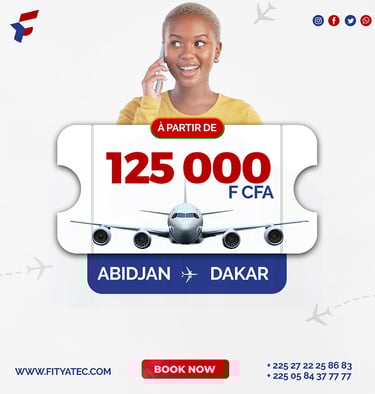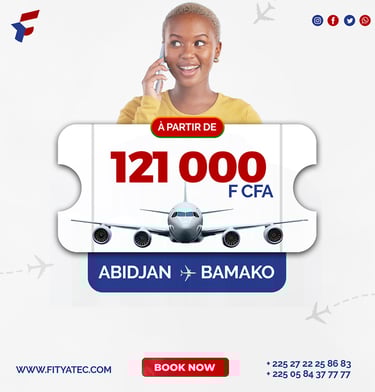 Avec FITYATEC VOYAGES, réservez vos vols en ligne en toute sécurité et simplicité. Grâce à notre partenariat avec Amadeus, accédez à plus de 430 compagnies aériennes et profitez des meilleurs tarifs et itinéraires vers toutes vos destinations, pour affaires ou loisirs.