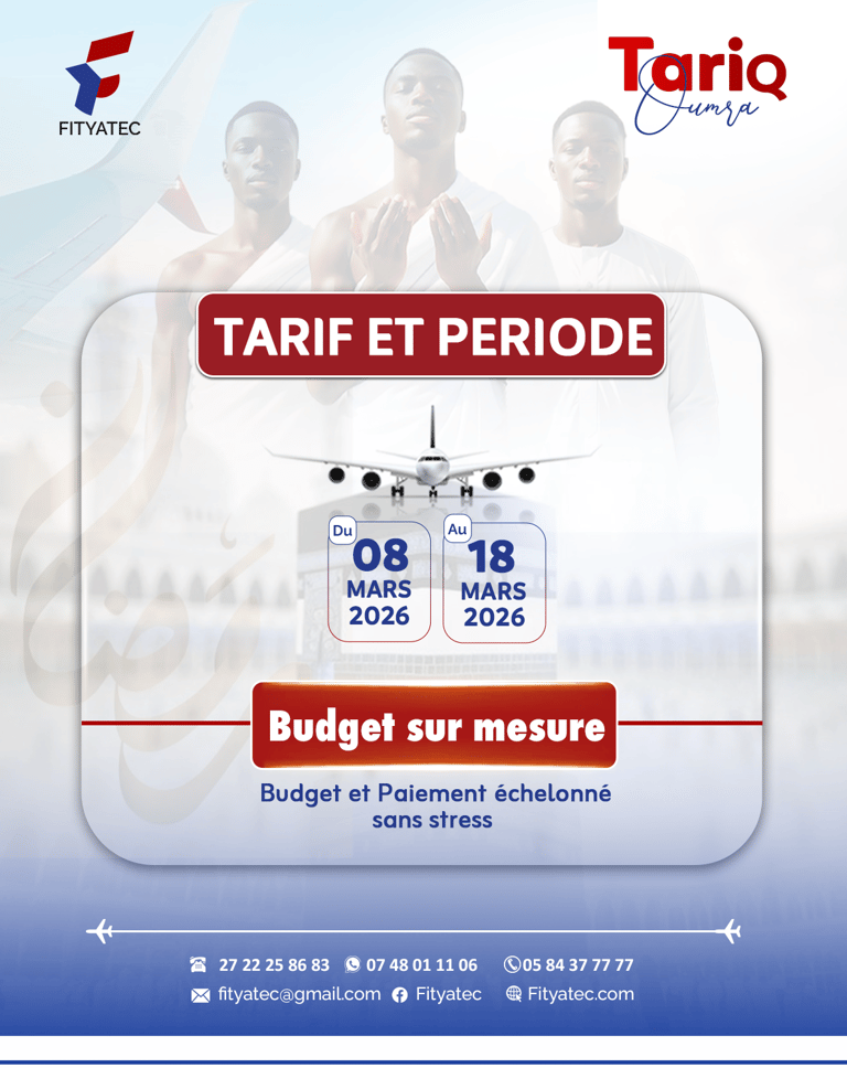 Tariq Omra est une initiative spéciale de FITYATEC VOYAGES, créée à l'occasion du mois béni de Ramadan 2026.